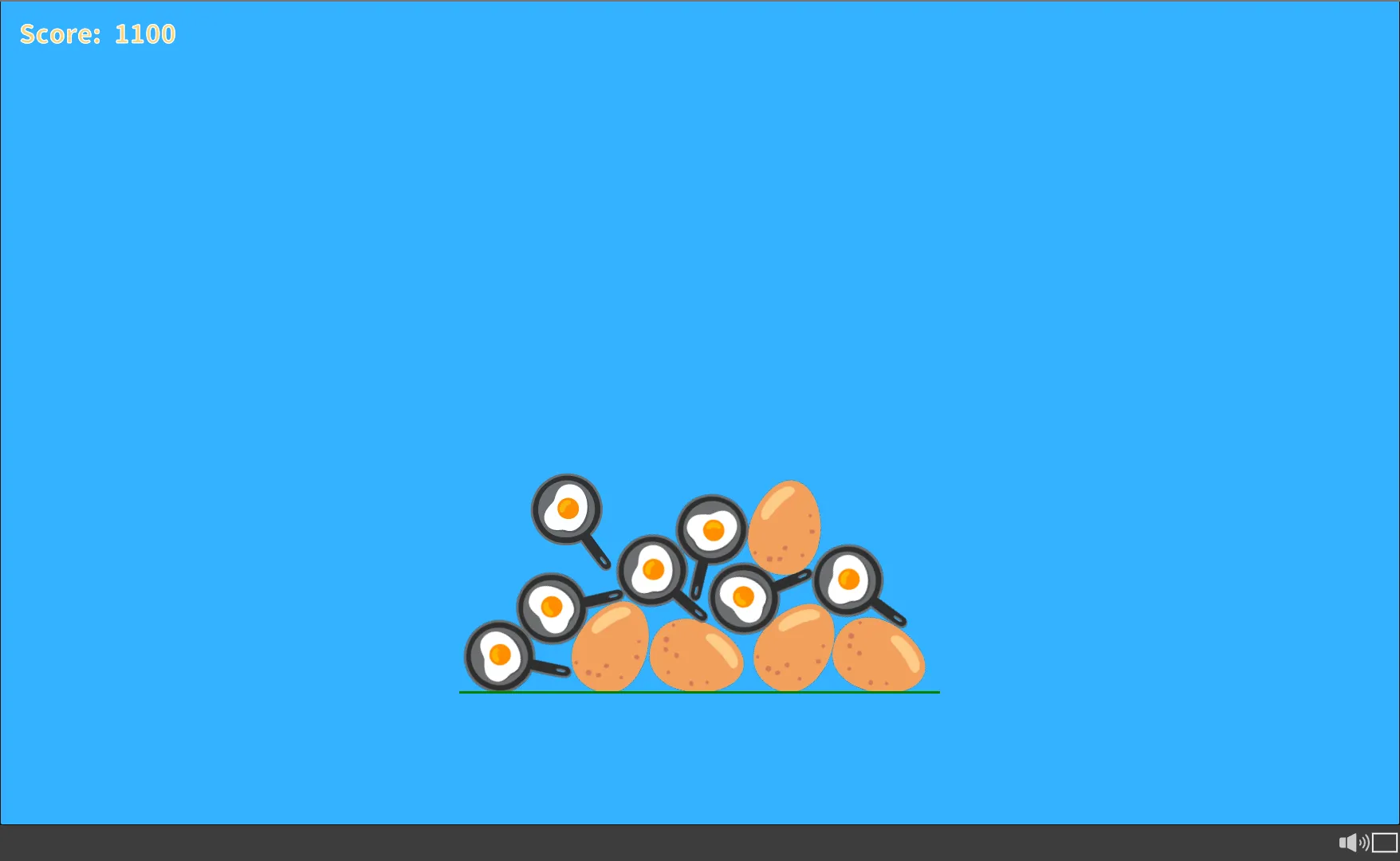 で、宇宙をさまようロケットが、ちりばめられたガラクタを「すくう」ゲームを作りました。